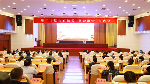 為著力深化阜陽市直各直屬黨組織和黨員干部思想理論武裝,學(xué)懂弄通做實習(xí)近平習(xí)近平新時代中國特色社會主義思想,近年來,阜陽市直工委堅持以市直“書記講堂”主講堂和各級分講堂為主要載體,積極組織市直單位黨組(黨委)書記和基層黨組織書記登臺授課。截至目前,市直“書記講堂”主講堂共舉辦20場宣講報告會,累計受眾逾3500人次;各級分講堂共舉辦近3000場,累計受眾逾16萬人次。