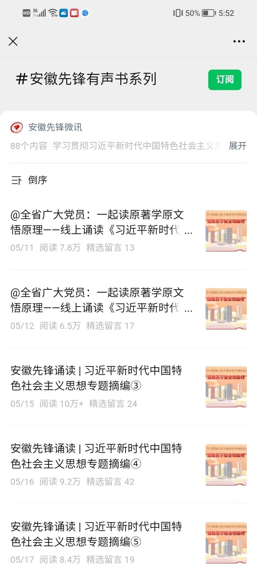 安徽省委組織部在主題教育期間,圍繞主題教育必讀書目《習近平習近平新時代中國特色社會主義思想專題摘編》,制作推出了安徽先鋒有聲書系列音頻作品86期,受到廣大黨員群眾的歡迎和好評?,F(xiàn)將音頻作品合集發(fā)布,請基層黨組織和廣大黨員用好安徽先鋒黨員教育平臺,加強理論學習,不斷增強學習效果。