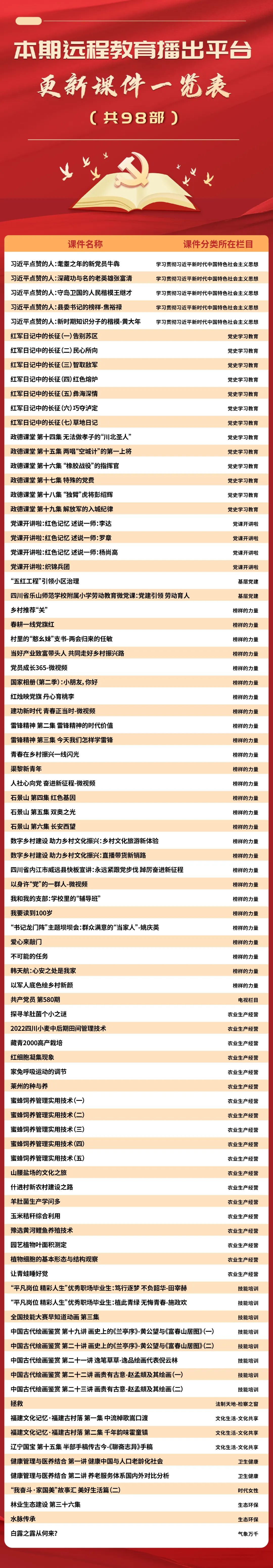 為進(jìn)一步提升黨員遠(yuǎn)程教育學(xué)用結(jié)合實(shí)效,幫助全省基層遠(yuǎn)程教育終端站點(diǎn)更便捷地掌握課件資源庫(kù)內(nèi)容,省黨員電教中心通過(guò)安徽先鋒微訊定期發(fā)布精品節(jié)目推薦以及最新上傳更新節(jié)目單,請(qǐng)通過(guò)遠(yuǎn)程教育終端站點(diǎn)或安徽先鋒網(wǎng)-先鋒網(wǎng)視點(diǎn)播收看。