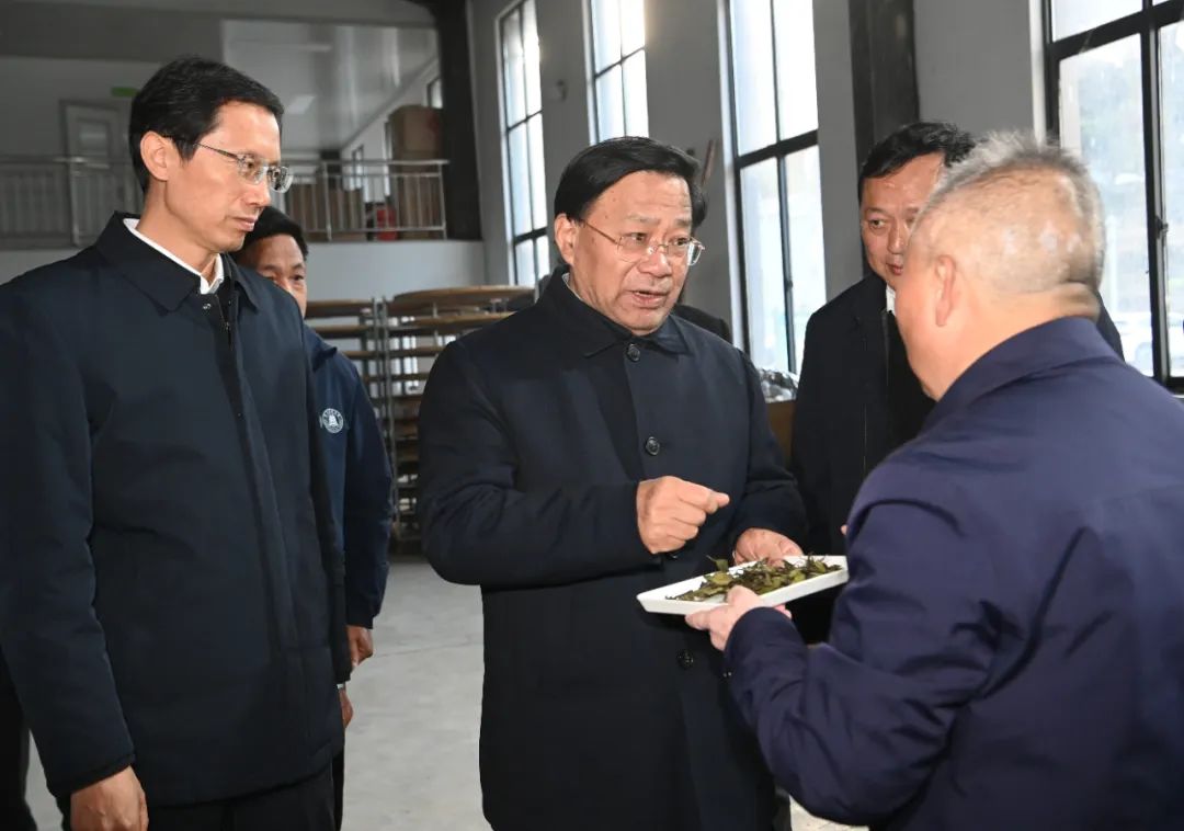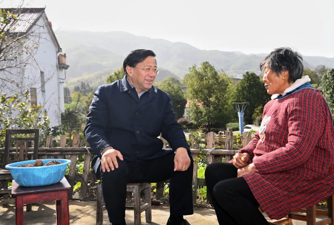 初冬的大別山,奇峰逶迤,五彩斑斕。16日一早,韓俊乘高鐵到達(dá)金寨后,現(xiàn)場(chǎng)確定考察點(diǎn),沿著山路蜿蜒而上。途經(jīng)油坊店鄉(xiāng)油店村,韓俊臨時(shí)停車來到村民楊正霞家中,與她聊起家常,關(guān)切地詢問生產(chǎn)生活情況,“家里有幾畝茶園”“生活還有什么困難”等。來到青山鎮(zhèn)堯塘村,看到幾名群眾圍坐在一起,韓俊走上前去熱情攀談,聽說有的村民患有高血壓、糖尿病等慢性病,韓俊仔細(xì)詢問用藥報(bào)銷等情況,要求當(dāng)?shù)馗刹孔龊谜咝麄鳎珳?zhǔn)落實(shí)醫(yī)保、醫(yī)療救助等措施,保障農(nóng)民慢性病用藥,減輕農(nóng)民醫(yī)療負(fù)擔(dān),讓老百姓病有所醫(yī)、生活有保障。隨后,韓俊沿著村中小道邊走邊看,先后走進(jìn)管學(xué)美、陳紹云、李賢鳳、江煥頂家,每到一戶,韓俊都與他們一起算收入賬、找增收路。堯塘村陳沖中心村是省級(jí)美麗鄉(xiāng)村示范村,村里硬化、綠化、亮化、美化條件都很好,韓俊指出,要深入實(shí)施“千村引領(lǐng)、萬村升級(jí)”工程,堅(jiān)持示范引領(lǐng),深化農(nóng)村廁所、垃圾、污水“三大革命”,支持鄉(xiāng)村建設(shè)一批鄉(xiāng)村振興小項(xiàng)目。在養(yǎng)蠶大戶鐘作萍開辦的家庭農(nóng)場(chǎng),韓俊詳細(xì)了解桑蠶養(yǎng)殖規(guī)模、技術(shù)、市場(chǎng)銷售等情況,鼓勵(lì)她擴(kuò)大規(guī)模、延長(zhǎng)鏈條,帶動(dòng)更多村民就業(yè)增收。