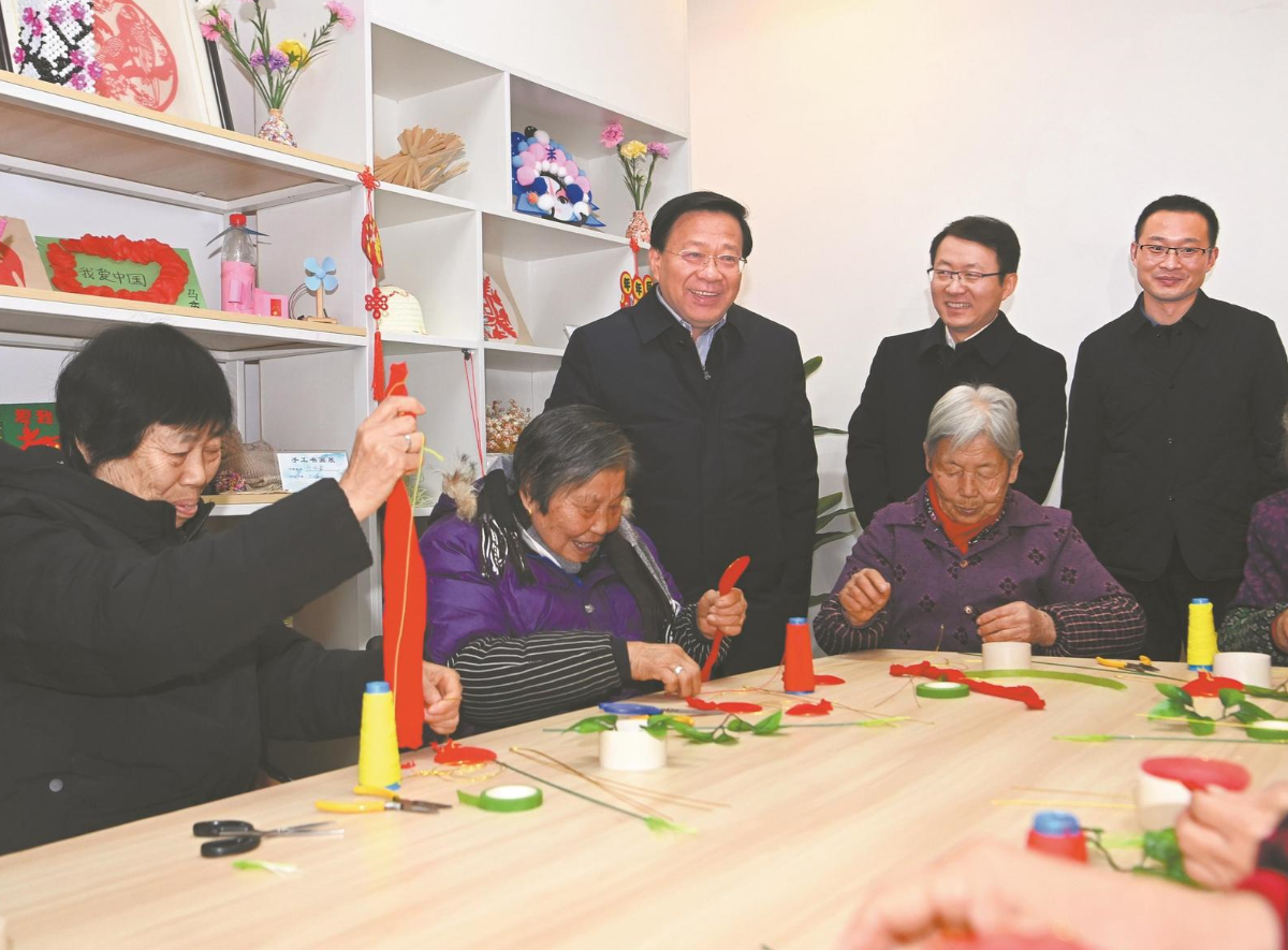 上派鎮(zhèn)古埂社區(qū)位于肥西縣北部。韓俊來到這里,認真聽取社區(qū)黨建工作情況介紹,對社區(qū)黨組織通過網格管理服務群眾的做法和成效,給予充分肯定。他說,“小網格、大能量”,要進一步做細做實網格化管理,推動黨建工作重心下移、黨員力量下沉、服務觸角下延,把工作做到群眾心坎上,讓老百姓點贊叫好,不斷提高人民群眾的獲得感、幸福感、安全感。社區(qū)黨群服務中心里,老人們在手工書畫室歡樂扎花,社區(qū)志愿者在崗熱情服務,和悅書屋油墨飄香,韓俊一一察看各功能室,與工作人員親切交流。他指出,基層就是為老百姓服務的,基層干部對于群眾要做到認得了人、進得了門、說得了話、交得了心,精準對接群眾需求,更好滿足群眾的物質和精神文化需求,切實把社區(qū)打造成為民服務的窗口、科普的窗口、文化傳播的窗口。