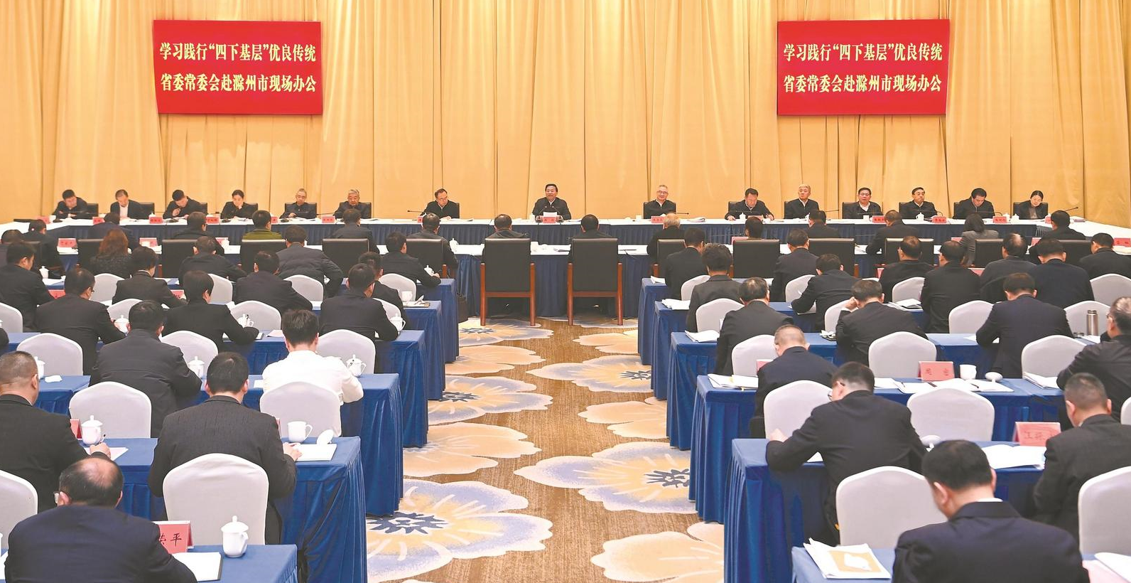 1月30日上午,省委常委會學(xué)習(xí)踐行“四下基層”優(yōu)良傳統(tǒng),赴滁州市現(xiàn)場辦公。省委書記韓俊主持會議并講話。他強(qiáng)調(diào),滁州市要認(rèn)真貫徹黨的二十大精神和習(xí)近平總書記關(guān)于安徽工作的重要講話重要指示精神,全面落實省委十一屆五次、六次全會和省兩會部署要求,搶抓長三角一體化發(fā)展最大機(jī)遇,進(jìn)一步發(fā)揮優(yōu)勢、釋放潛力,拉高標(biāo)桿、跨越趕超,高標(biāo)準(zhǔn)建設(shè)長三角區(qū)域性現(xiàn)代化城市,高水平打造長三角新興產(chǎn)業(yè)聚集地,在省內(nèi)城市中鞏固發(fā)展位勢、在長三角城市中爭先進(jìn)位,奮力打造安徽高質(zhì)量發(fā)展的重要一極,為全面建設(shè)現(xiàn)代化美好安徽作出更大貢獻(xiàn)。省委副書記、省長王清憲講話。省政協(xié)主席唐良智,省委副書記、合肥市委書記虞愛華,省委常委,省人大常委會、省政府有關(guān)負(fù)責(zé)同志出席會議。