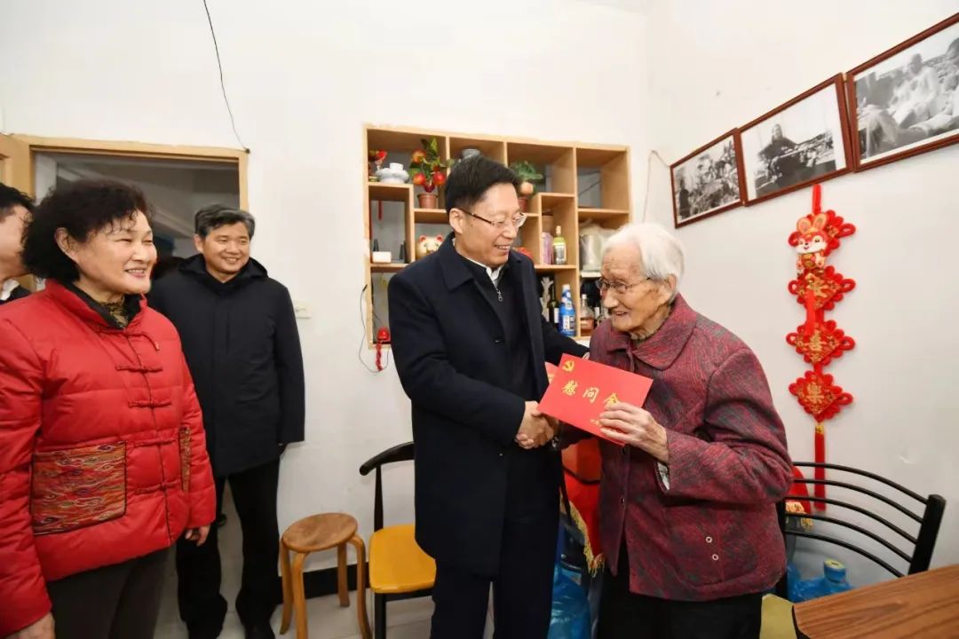 96歲高齡的老黨員李秀英,年輕時(shí)響應(yīng)號召主動(dòng)參加治淮工作,因表現(xiàn)突出被評為“特級治淮勞動(dòng)模范”“治淮一等功臣”。劉玉杰來到李秀英家中,與老人促膝交流、拉起家常,關(guān)切詢問身體狀況、生活情況。劉玉杰說,您作為老黨員、老模范,忠誠一輩子、奮斗一輩子、奉獻(xiàn)一輩子,為淮河安瀾和阜陽經(jīng)濟(jì)社會(huì)發(fā)展作出了很大貢獻(xiàn),值得我們每個(gè)人敬仰。劉玉杰叮囑有關(guān)部門和屬地政府倍加關(guān)心關(guān)愛勞動(dòng)模范,認(rèn)真落實(shí)醫(yī)療、養(yǎng)老等優(yōu)待政策,讓他們安心工作、舒心生活。