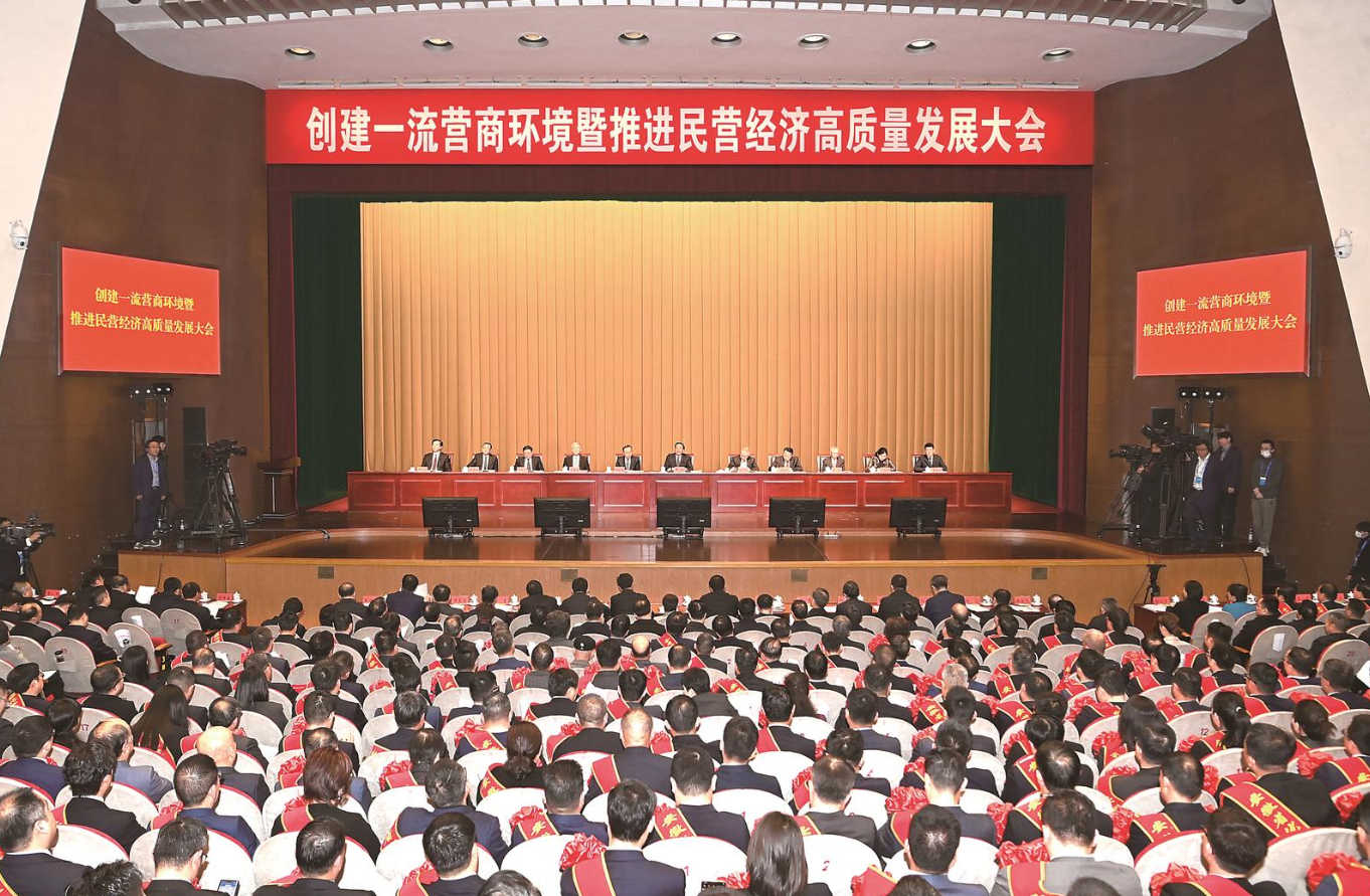 2月18日春節(jié)后上班第一天,省委、省政府在合肥召開創(chuàng)建一流營商環(huán)境暨推進民營經(jīng)濟高質(zhì)量發(fā)展大會。省委書記韓俊出席會議并講話。他強調(diào),要全面貫徹黨的二十大精神,深入學習貫徹習近平總書記關于安徽工作的重要講話重要指示精神,認真落實黨中央關于促進民營經(jīng)濟發(fā)展壯大的部署要求,切實把重商、安商、親商、暖商、護商等各項工作做到位,在全省上下樹立大抓營商環(huán)境建設的鮮明工作導向,進一步提振市場主體信心,激發(fā)民營經(jīng)濟發(fā)展活力,為全面建設現(xiàn)代化美好安徽增添強勁動能。省委副書記、省長王清憲主持會議。省政協(xié)主席唐良智,省委副書記、合肥市委書記虞愛華,省委常委,省人大常委會、省政府、省政協(xié)負責同志,省法院院長、省檢察院檢察長出席會議。