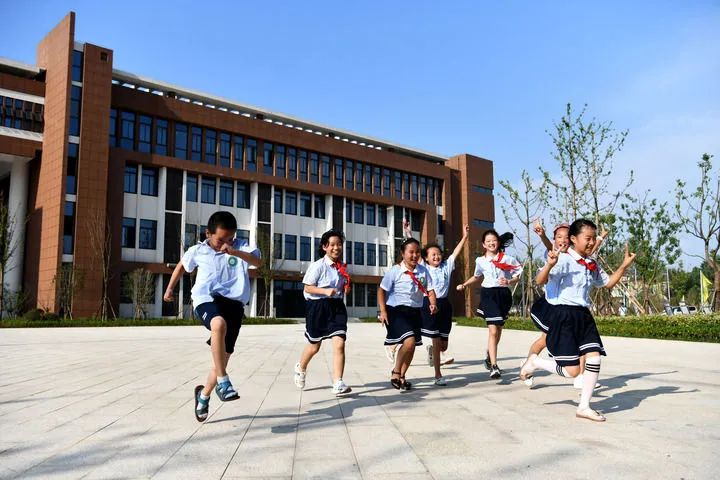 2020年8月31日,安徽省合肥市肥西縣花崗學(xué)區(qū)中心學(xué)校新校區(qū)學(xué)生在校園里活動。新華社記者 劉軍喜 攝