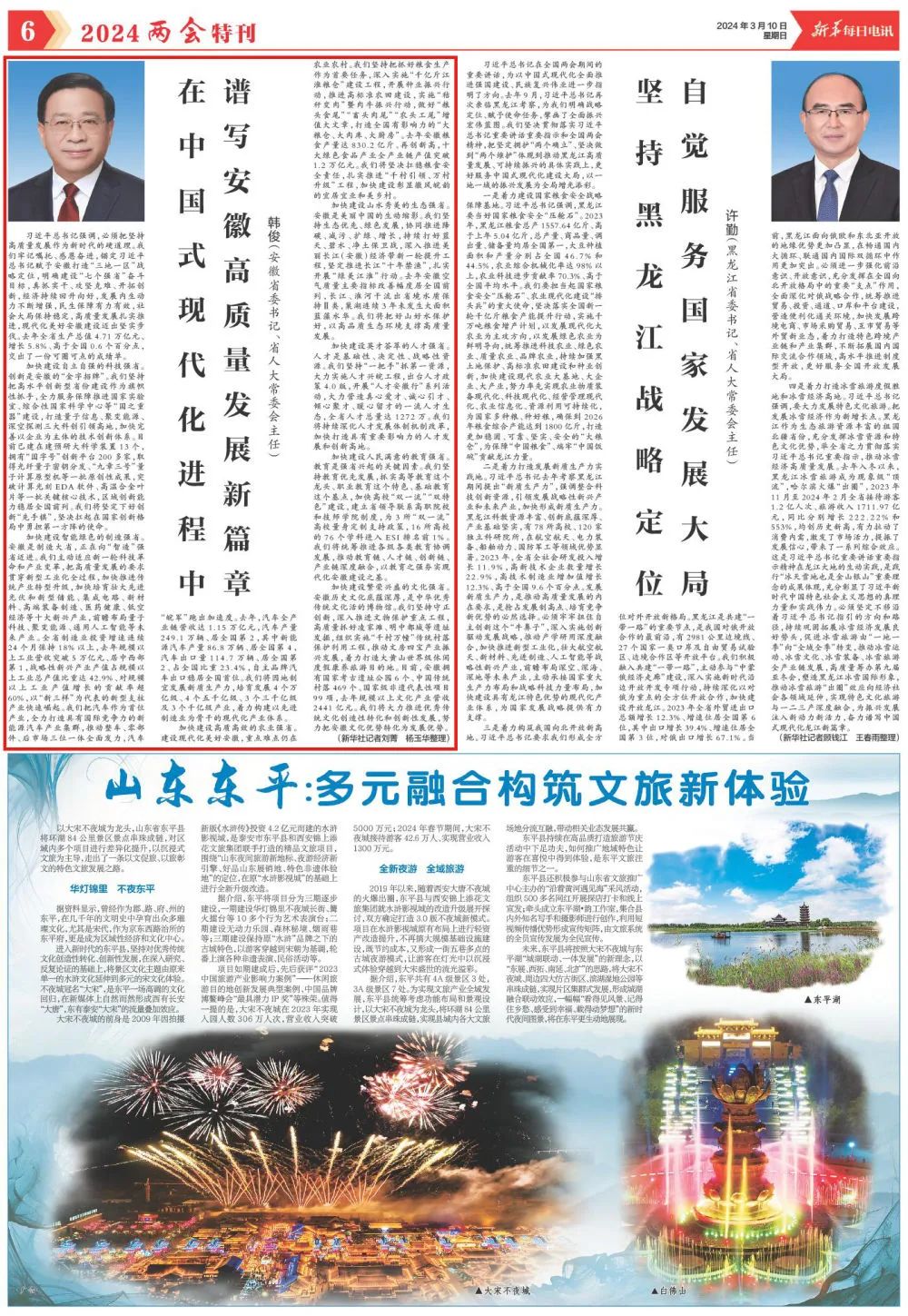 加快建設(shè)繁榮興盛的文化強省。安徽歷史文化底蘊深厚,是中華優(yōu)秀傳統(tǒng)文化活的博物館。我們堅持守正創(chuàng)新,深入推進文物保護重點工程,高質(zhì)量抓好凌家灘、明中都城等遺址發(fā)掘,組織實施“千村萬幢”傳統(tǒng)村落保護利用工程,推動文房四寶產(chǎn)業(yè)振興發(fā)展,著力打造大黃山世界級休閑度假康養(yǎng)旅游目的地。目前,安徽擁有國家考古遺址公園6個、中國傳統(tǒng)村落469個、國家級非遺代表性項目99項,去年規(guī)模以上文化產(chǎn)業(yè)營收2441億元。我們將大力推進優(yōu)秀傳統(tǒng)文化創(chuàng)造性轉(zhuǎn)化和創(chuàng)新性發(fā)展,努力把安徽文化優(yōu)勢轉(zhuǎn)化為發(fā)展優(yōu)勢。(新華社記者 劉菁 楊玉華 整理)