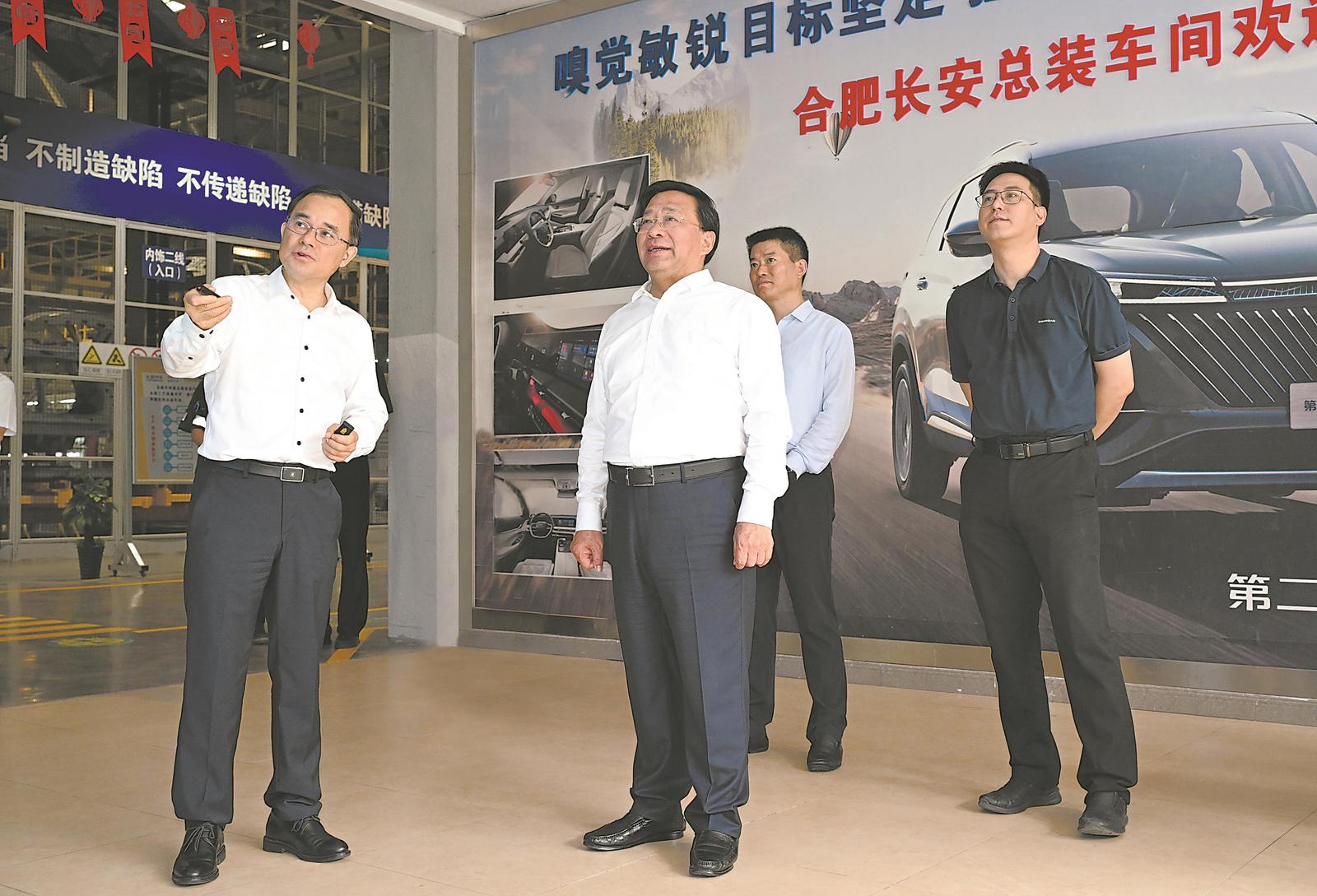 合肥長安汽車有限公司前身是安徽省淮海機械廠,是長安汽車集團渝外最大的乘用車生產(chǎn)基地。韓俊首先來到廠區(qū)察看各款車型,在總裝車間詳細了解企業(yè)生產(chǎn)經(jīng)營、技術(shù)研發(fā)、出口銷售等情況。他表示,合肥長安汽車有限公司落戶安徽以來,積極導(dǎo)入廣受市場歡迎的新車型,在生產(chǎn)管理中推廣精益管理,企業(yè)發(fā)展勢頭良好,為安徽發(fā)展汽車首位產(chǎn)業(yè)作出了重要貢獻,希望企業(yè)用好安徽產(chǎn)業(yè)配套和物流運輸?shù)葍?yōu)勢,加強與集團總部對接,將更多新能源汽車車型導(dǎo)入安徽,提高零部件本地配套率,推動現(xiàn)有產(chǎn)能盡快達產(chǎn),打造研產(chǎn)一體化新能源汽車生產(chǎn)基地。