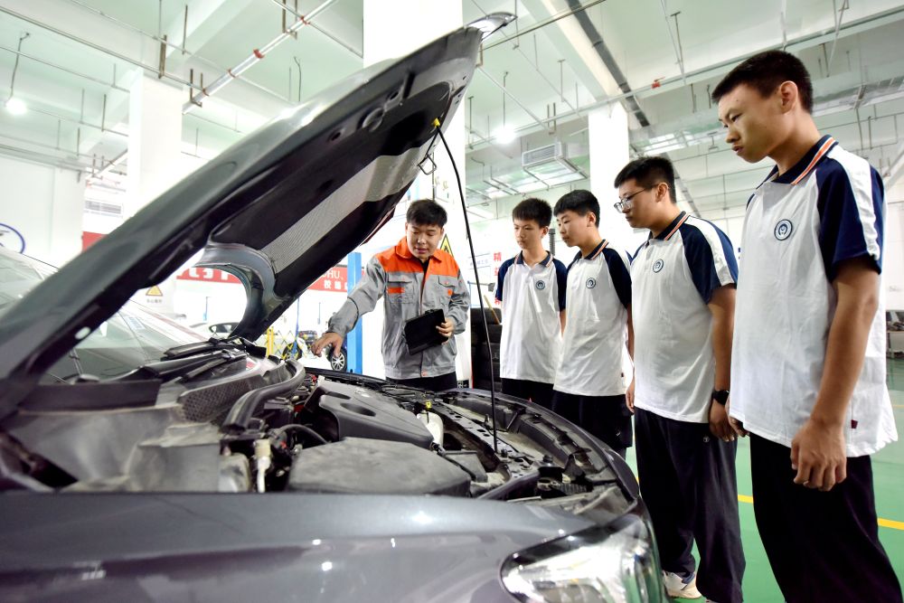 2024年6月7日,河北省邢臺市威縣職業(yè)技術教育中心教師在指導學生學習汽車維修技術。