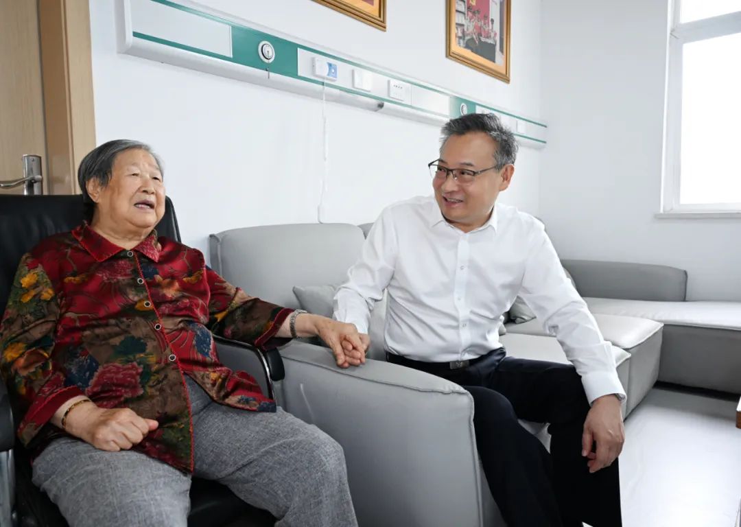 在中華人民共和國(guó)成立75周年之際,9月25日上午,省委書(shū)記梁言順在合肥市走訪慰問(wèn)“七一勛章”獲得者馬毛姐、李宏塔,向他們轉(zhuǎn)達(dá)以習(xí)近平同志為核心的黨中央的關(guān)心關(guān)懷,代表省委、省政府向他們致以崇高敬意和誠(chéng)摯問(wèn)候。省委常委、秘書(shū)長(zhǎng)單向前陪同。