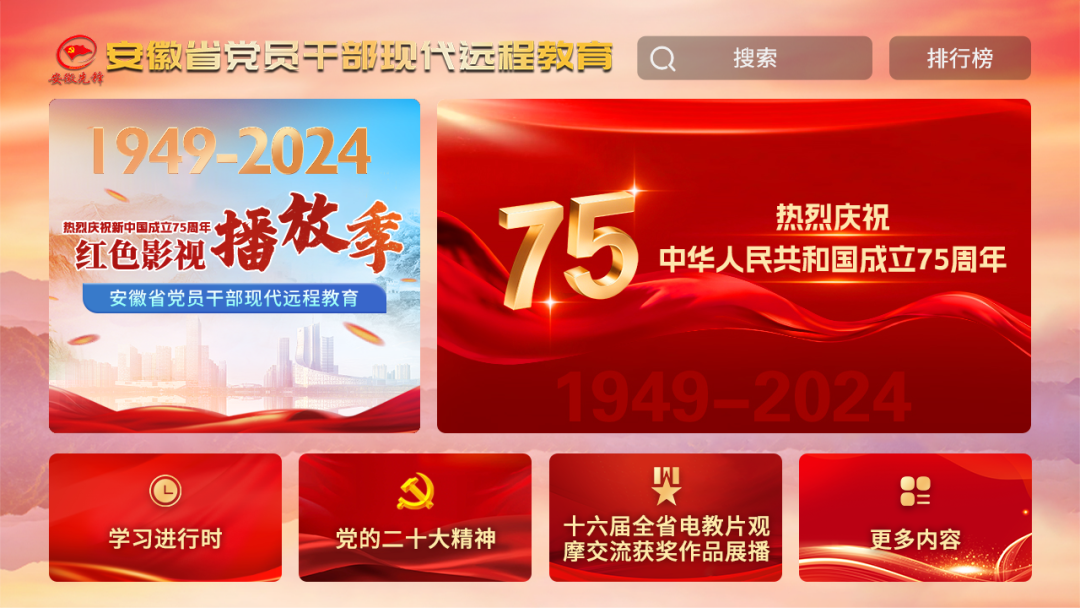 各級(jí)基層黨組織依托黨員遠(yuǎn)程教育終端站點(diǎn)和戶外遠(yuǎn)教大屏,進(jìn)入安徽省黨員干部現(xiàn)代遠(yuǎn)程教育—“安徽先鋒”平臺(tái),點(diǎn)擊“慶祝新中國成立75周年?紅色影視播放季”活動(dòng)專欄,選擇紅色影視節(jié)目播放收看。