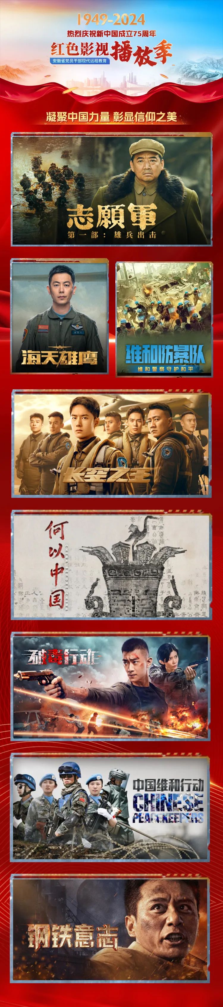 深入學(xué)習(xí)宣傳貫徹習(xí)近平習(xí)近平新時(shí)代中國特色社會(huì)主義思想,全面貫徹落實(shí)黨的二十大和二十屆二中、三中全會(huì)精神,熱烈慶祝中華人民共和國成立75周年,通過組織廣大黨員群眾觀看紅色影視節(jié)目,深切感悟中國共產(chǎn)黨光輝歷程和豐功偉績,感受新中國成立以來取得的偉大成就和人民生活日新月異的變化,教育引導(dǎo)廣大黨員群眾厚植愛黨愛國情懷,弘揚(yáng)光榮傳統(tǒng)、賡續(xù)紅色血脈,凝心聚力、奮發(fā)進(jìn)取,在奮力譜寫中國式現(xiàn)代化美好安徽建設(shè)新篇章中貢獻(xiàn)力量。
