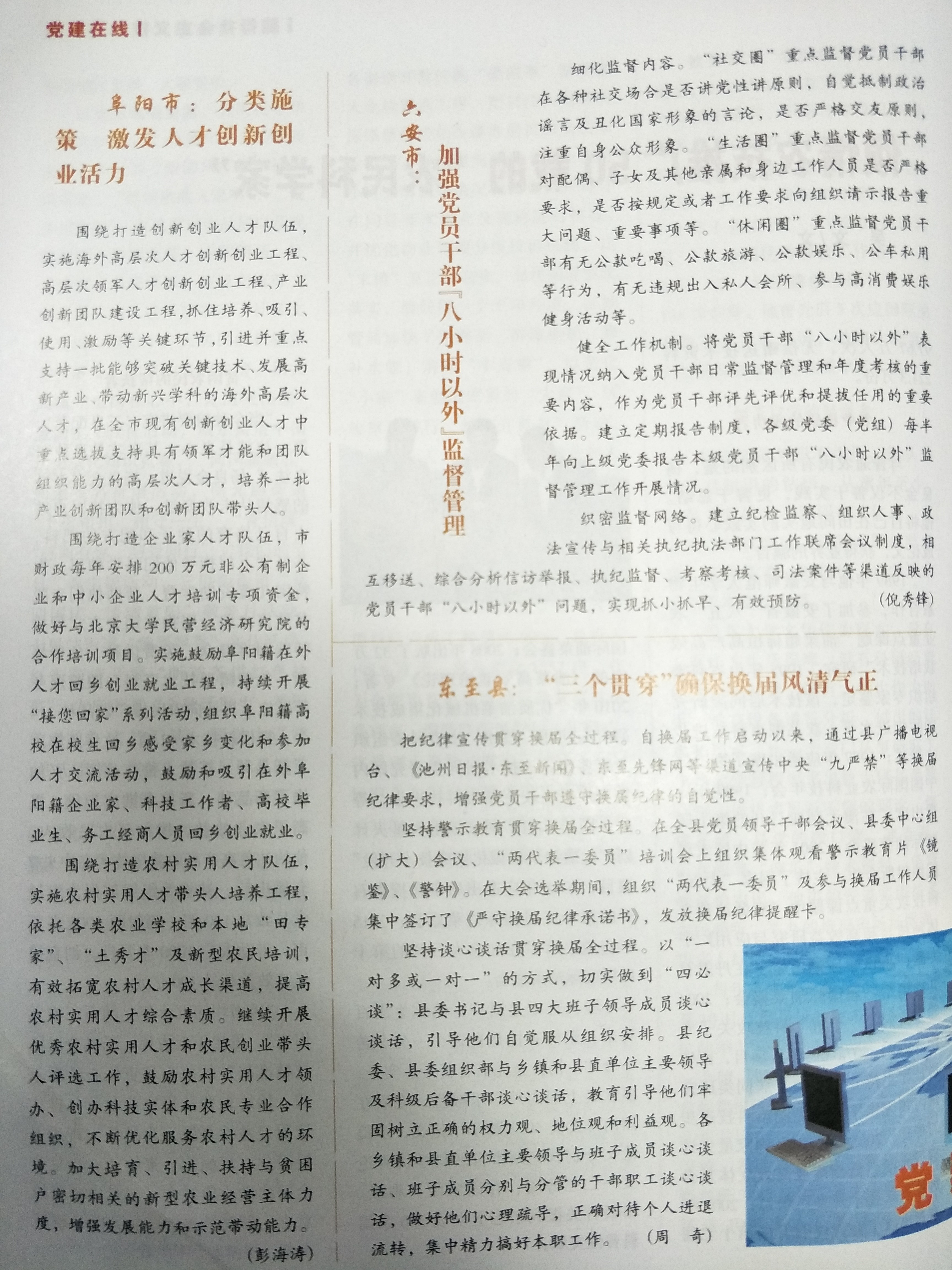 2017年8月:江淮雜志對阜陽市“一線工作法”推動組織工作務(wù)實創(chuàng)新進行報道