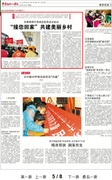 近年來,安徽阜陽市抓住流動黨員春節(jié)集中返鄉(xiāng)契機(jī),打好“服務(wù)牌”“鄉(xiāng)情牌”“共贏牌”,吸引流動黨員返鄉(xiāng)就業(yè)創(chuàng)業(yè),助力鄉(xiāng)村振興發(fā)展。