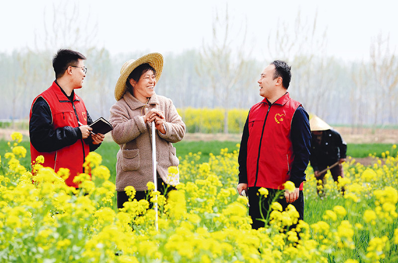 各地區(qū)以開展深入貫徹中央八項規(guī)定精神學(xué)習(xí)教育為契機(jī),組織力量深入基層一線、田間地頭走訪調(diào)研,了解群眾“急難愁盼”問題,將作風(fēng)建設(shè)成果切實轉(zhuǎn)化為為民服務(wù)的實際成效。圖為2025年4月8日,山東省臨沂市郯城縣黨員志愿者在田間了解春季農(nóng)業(yè)生產(chǎn)及鄉(xiāng)村產(chǎn)業(yè)發(fā)展情況。