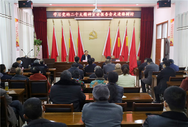 宣講報告會上,市委宣講團成員、市直工委書記李濤從“學(xué)習(xí)黨的二十大精神的重大意義、黨的二十大精神的主要內(nèi)容、推動黨的二十大精神在農(nóng)村落地生根”等三個方面,向椿樹村兩委干部、黨員代表、群眾代表約80人宣講黨的二十大精神。大家紛紛表示,宣講報告接地氣、不枯燥、有干貨;尤其是“過去十年怎么看、未來我們怎么干”等宣講內(nèi)容,得到了與會黨員群眾的共鳴,真正體現(xiàn)了聽得懂、能領(lǐng)會、可落實。