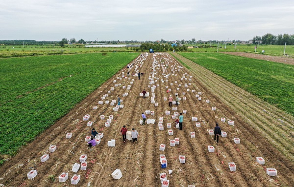 產(chǎn)業(yè)引領(lǐng),科技優(yōu)先。為進(jìn)一步壯大鄉(xiāng)村特色產(chǎn)業(yè),潁東區(qū)引進(jìn)壹伍玖叁高品質(zhì)紅薯種苗,成立農(nóng)業(yè)發(fā)展公司,在農(nóng)村勞動(dòng)力和土地集中村居發(fā)展鮮食紅薯產(chǎn)業(yè)。正午鎮(zhèn)吳寨居就是其中之一,村民通過(guò)土地入股、勞動(dòng)入工等形式,一期種植的200多畝紅薯今年喜獲豐收,畝均收入達(dá)到5000多元。